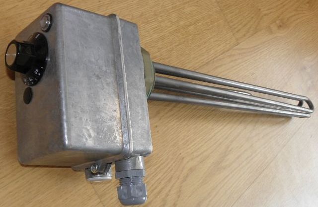 Avariiküte. Komplektis: Kütteelement EFFEKT 6 kW, 435 mm, AISI 304, 2", 3x400/230 V ja reguleerimisseade TY signaallambiga, +(7°C) 30 °C...+85 °C