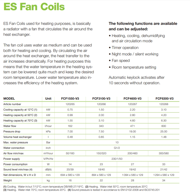 ES Energy Save fan coils