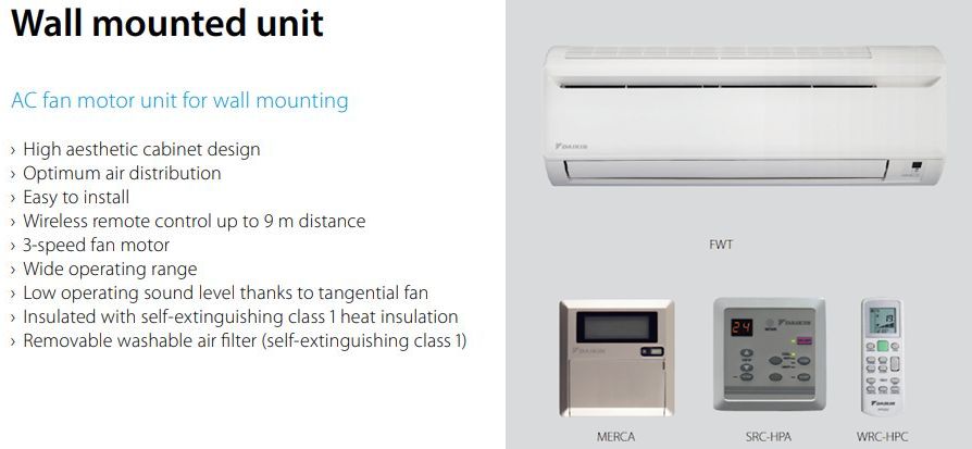 Daikin FWT04GT + WRC-HPC  wall-mounted fan coil unit, 2-pipe version, hind 430 eur + km