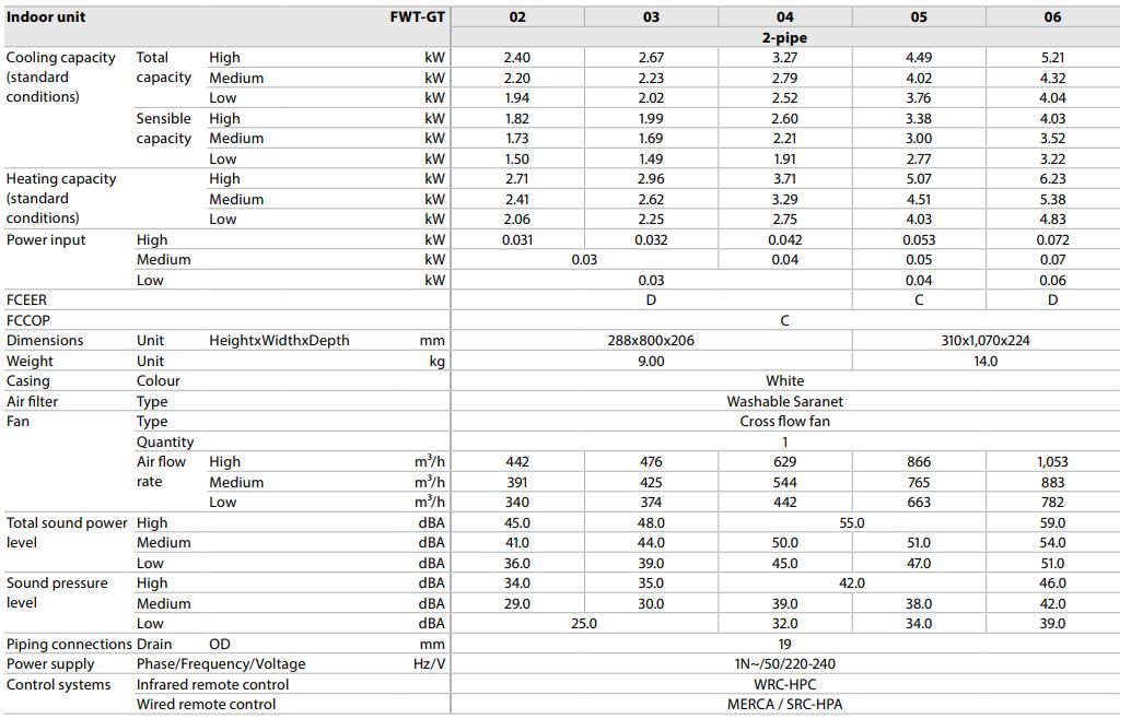 Daikin FWT06GT + WRC-HPC  wall-mounted fan coil unit, 2-pipe version, hind 510 eur + km