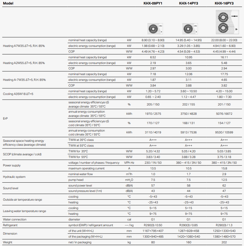 Lisainfot leiad: Kaisai KHX R290 monoblock heat pumps