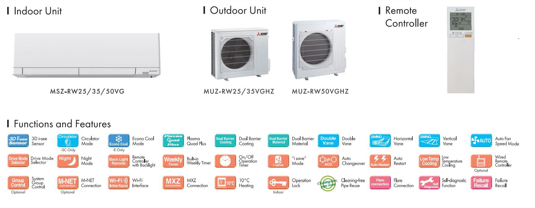 3,2 (0,8 - 6,3) kW R32 HYPER HEATING, MSZ-RW25VG-SC / MUZ-RW25VGHZ-SC